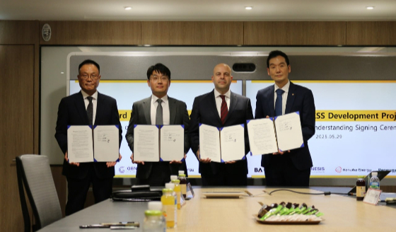영국 BESS 프로젝트 컨소시엄 관계사인 비에이에너지, 한화에너지가 영국 현지 신재생에너지 개발 및 EPC(설계·조달·시공)사인 제네시스(Genesis)와 1.2GW(기가와트) 규모의 에너지저장장치(BESS) 공동개발에 대한 다자간 업무협약(MOU)을 체결했다고 30일 밝혔다. 이번 협약에 따라 비에이에너지와 한화에너지는 2035년까지 영국 내 복수의 프로젝트를 공동 개발할 계획이다.